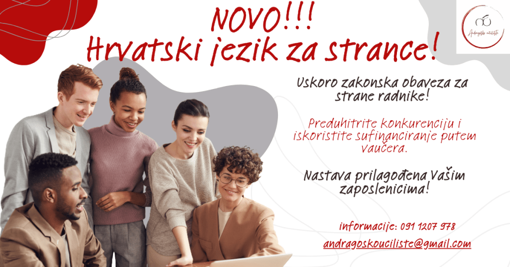 Andragoško učilište organizira učenje hrvatskog jezika za strane radnike. Zahvaljujući suradnji s ustanovom Centar stranih jezika STUDIO ŽERJAV, moguće je sufinanciranje učenja hrvatskog za strance preko sustava vaučera.